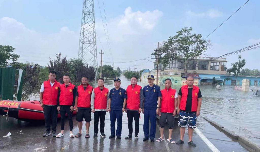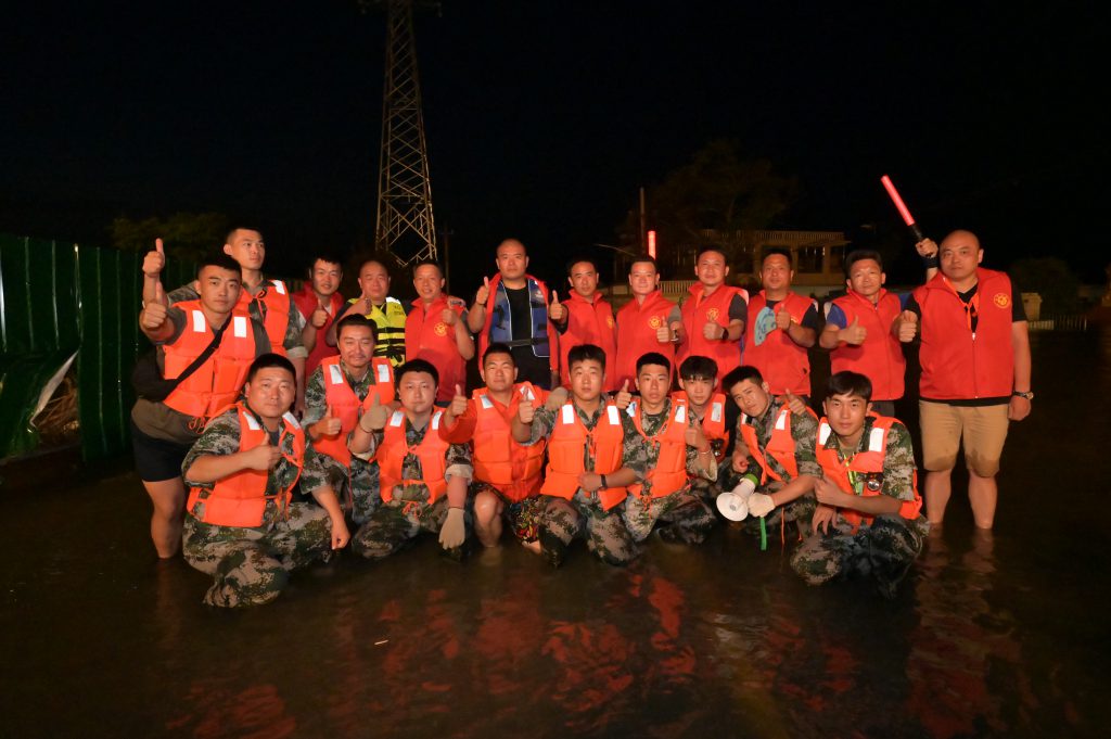 在集团董事长韩红安的号召下,ks凯时建工副总经理杨明、ks凯时股份物资采购中心总监胡旭、行政管理中心王雅鑫等近20名具备基本救援技能的ks凯时人,紧急成立ks凯时抢险突击队,在与消防救援单位完成对接后,自备三艘冲锋舟、20余件救生衣、照明设备、药品、补给食物等,于7月23日上午9点赶往寺庄顶村开展紧急救援。