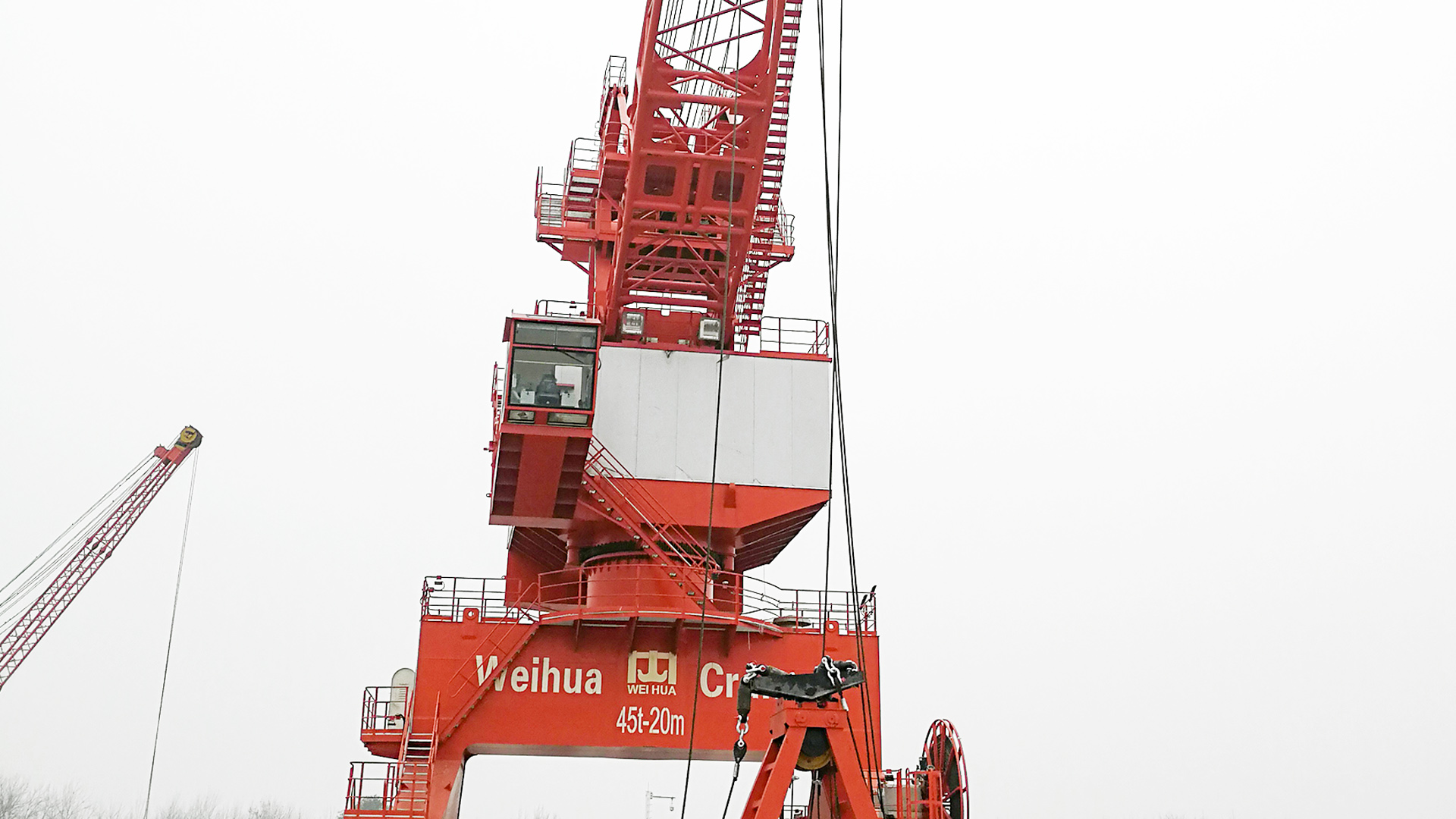门座起重机根据臂架结构形式,分为单臂架和四连杆两种类型。单臂架门座起重机结构简单、起重量大自重轻。四连杆门座起重机采用组合臂架系统,实现变幅过程货物水平移动,具有水平落差小、变幅平稳、功耗低的特点。两种类型的门座式起重机均能满足件杂货、散货以及集装箱的装卸作业要求,具有应用范围广、作业效率高、整机运行稳定等特点。