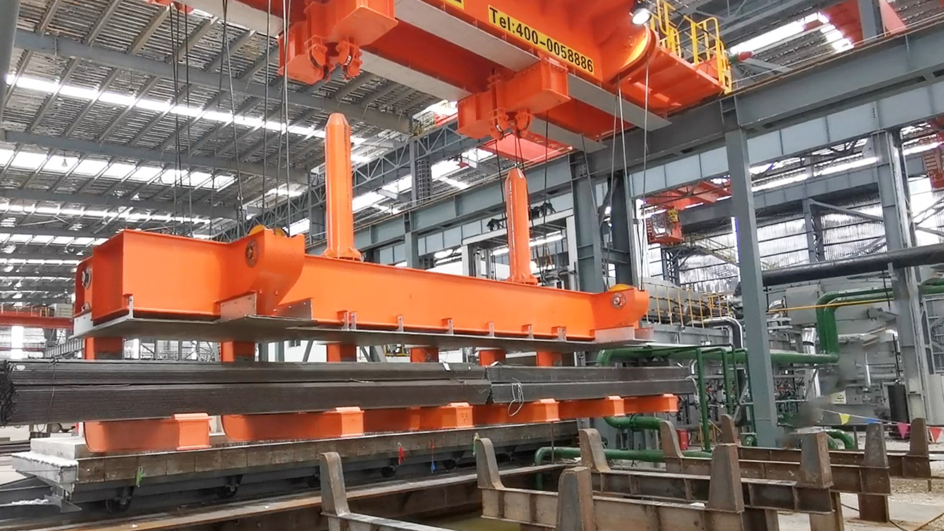 ks凯时智能淬火起重机主要用于高温型材或棒材的吊装并进行淬火工艺。